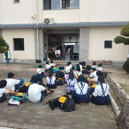 出発式です。 多くの保護者の方がお見送りに来てくださいました。