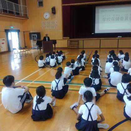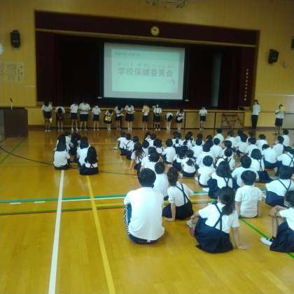 校医の先生お話し、保健委員会の子どもたちの発表 がありました。