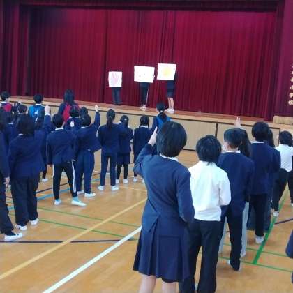 縦割り班でジャンケンゲームをしています。