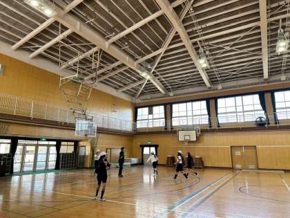 大阪エヴェッサのコーチに来ていただいて、バスケットボールを教えてもらいました。