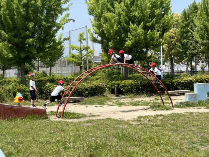 交通ルールや公園でのマナーを守りながら、探検をしました。公園の遊具も、順番を守ってなかよく遊ぶことができました。