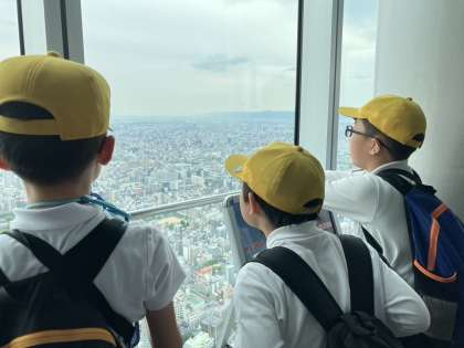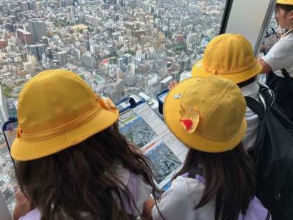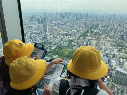社会見学であべのハルカスに行きました。高いところから見える風景を楽しんで見ていました。