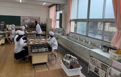家庭科で調理実習をしました。今日のテーマは『ゆでる』 班で協力して調理しました。