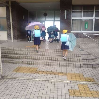 雨のなかの登校になりました。