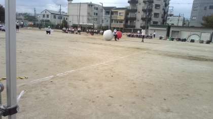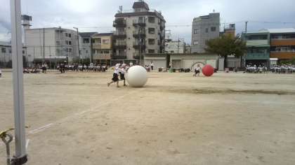 1年生、2年生の大玉転がしです。