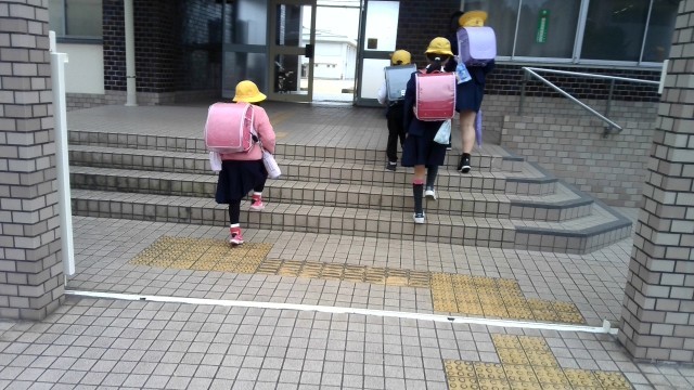 小雨のなかの登校になりました。