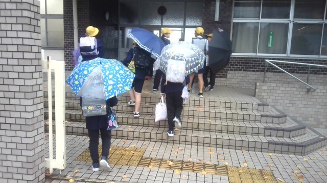 雨の中の登校になりました。