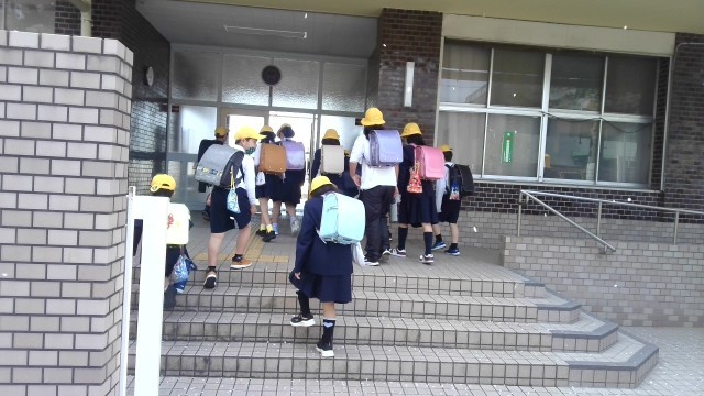 集会が終わり教室に戻ります。