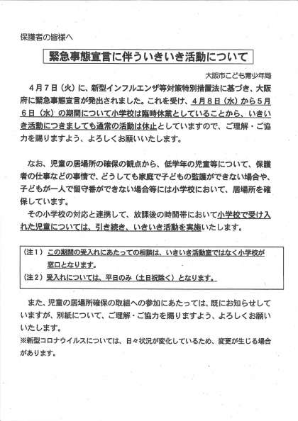 いきいき活動の休止の延長について