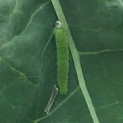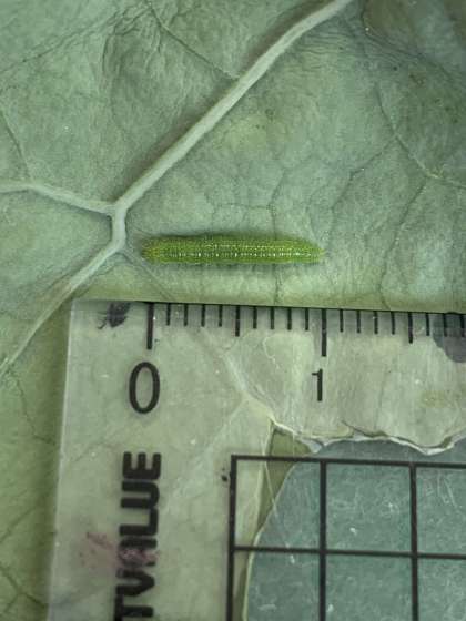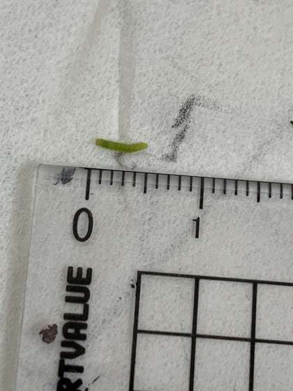 モンシロチョウの幼虫の長さをはかってみると5mmくらいでした。