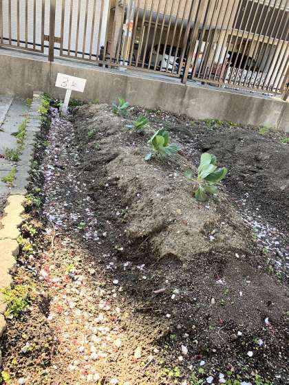 3年生の学習園には2種類の植物の種をまいています。