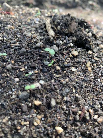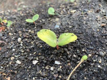 学習園をよく見ると、種から芽が出てきました。