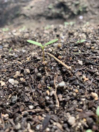 よく見るといちばん初めに出てきた子葉と後から出てきた葉の形が違いますね。