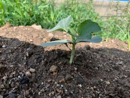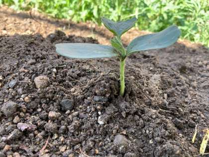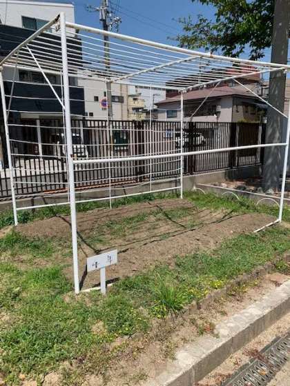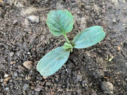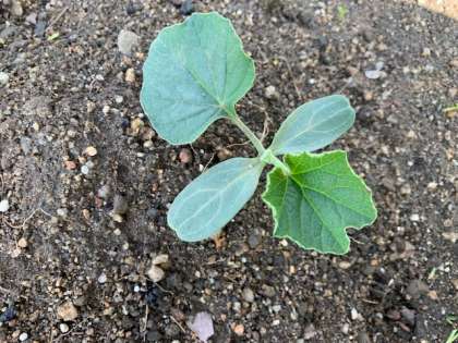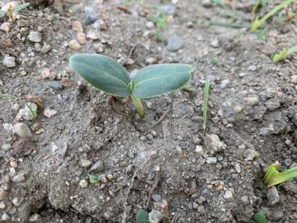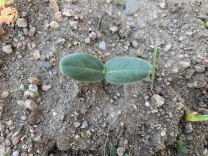 4年生の学習園では、ヒョウタンの種からの芽(め)が出てきました。