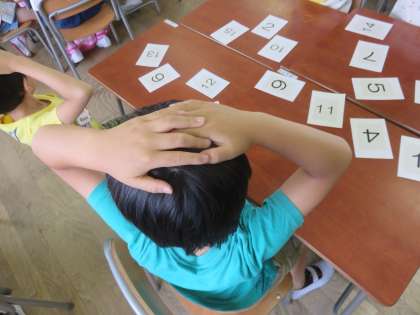 1〜15の数字の発音を練習しながら、子どもたちは、一生懸命に覚えていました。