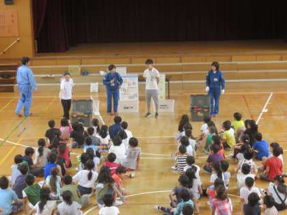 本日、大阪市中部環境事業局の方々が来校してくださり、ゴミの分別についての出前授業をしてくださいました。