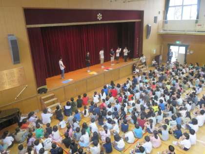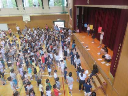 今日は、1学期最後の児童集会(たてわり班)でした。