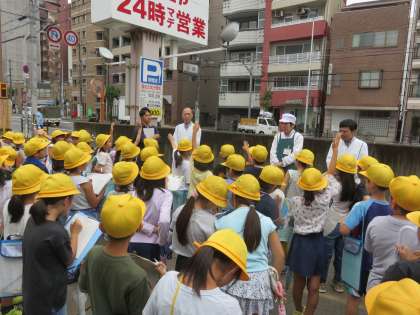 今日は3年生の社会見学として、イズミヤ/デイリーカナート玉造店を見学させていただきました。食品の販売の様子、倉庫や加工場などスーパーの裏側等を見せてもらい、食品や流通について学習しました。