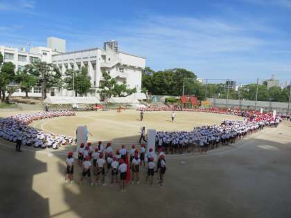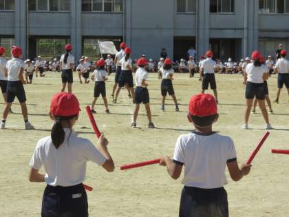 昨日に続き、今日も運動会の全体練習二回目を行いました。大玉おくりと応援合戦です。両応援団の、大きく気合の入った掛け声で運動会当日も盛り上げてほしいと思います。