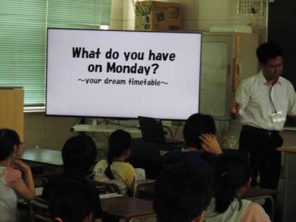 「Your Dream TimeTable」、自分の夢の時間割を英語で作り、児童同士で紹介しました。