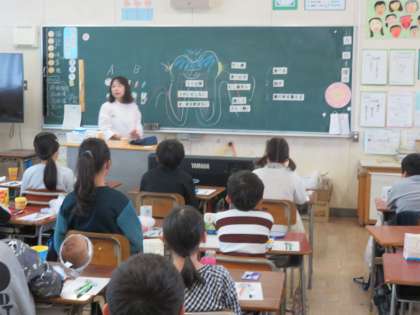 今日は歯科衛生士さんに来ていただき、4年生は歯みがき指導をしていただきました。
