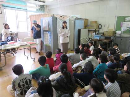 その後、教室から保健室に移動し、フッ化物塗布を行いました。フッ化物塗布をすると、歯は強くなり“むし歯”になりにくくなります。