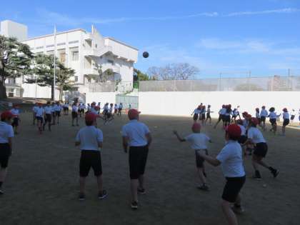 5年生の体育では、男女に別れてのドッチボールに取り組んでいます。