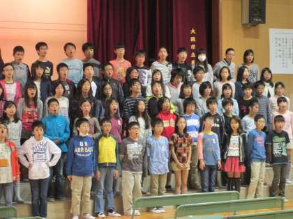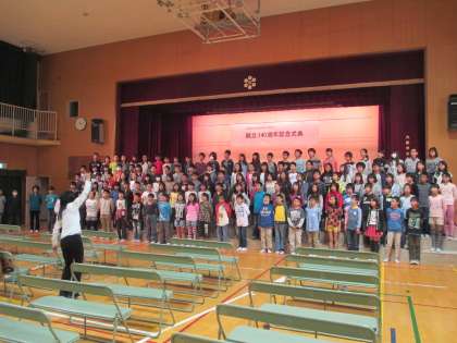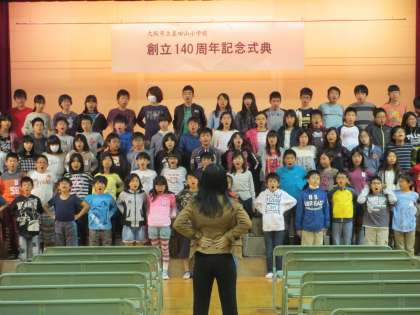 8日(土)の創立140周年記念式典に向けて6年生が全体練習をしました。「ふるさと」「Let's search for tomorrow」の2曲を合唱します。高い声の出し方を練習し、歌詞をイメージしながら気持ちをこめて歌うなどの指導を受けると、子ども達の気持ちがこもったきれいな歌声が講堂に響いていました。【発信:教務 北風】