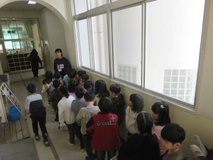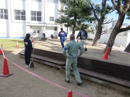 今日は教頭先生からの講話があり、その後管理作業員さんとともに学校の環境整備をしました。そして各学年にわかれ、子ども達と触れ合いながら、授業や給食を体験しました。
