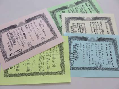 今週はあいさつ安全歩行強調週間でした。昼休みに放送でオリジナルソングを流し、廊下では「廊下を走るの ダメダメ」「右側通行 OKOK」と、廊下を安全に歩くよう注意を促していました。また、あいさつができた子どもに表彰状を渡しており、子ども達は元気よく挨拶して賞状を嬉しそうにもらっていました。