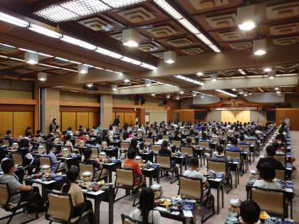 修学旅行、初日の夜は、豪華な食事に広いお風呂、おみやげを買って、きれいな部屋で過ごして、楽しい時間があっという間に過ぎました。みんなで協力して行動できていました。