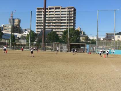 12月になりました。だんだんと気温も下がって寒さを感じる日が多くなってきました。今日は天気もよく、真田山グラウンドで5年生が体育でティーベースボールをしました。真田山グラウンドは広く使えるので、のびのびとできます。