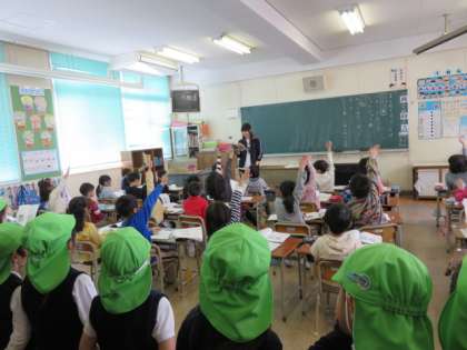 休み時間の運動場の様子を見学しているときには、真田山幼稚園を卒園した子どもたちがうれしそうに園児に声をかけていました。学習は、体育、国語、図工の様子を見学していただきました。4月から入学してくる子どもたちの先輩として、子ども達はしっかり学習していました。