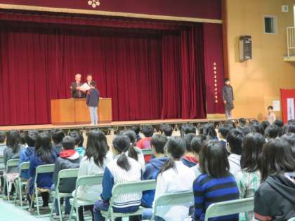 今日は、卒業式の予行を行いました。6年生、5年生とも本番さながらで、緊張した面持ちでした。最終の確認をしながら進めましたが、6年生、5年生ともしっかりとやりきることができました。卒業式では、保護者や来賓の皆様に、凛々しく胸をはって卒業していく姿を見ていただけたらと思います。6年生は後3日で卒業です。残り少ない小学校生活ですが、なかまともに有意義な時間を過ごしたいと思います。