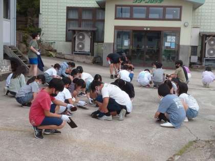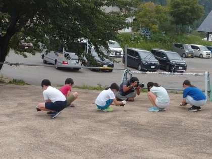 焼き板を新聞紙でこすってすすを落とした後に、板に絵を描いていきます。最初は真っ黒な板をこするときれいな木目が現れます。林間学習の思い出となるような絵を描いている子が多かったです。