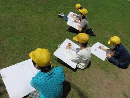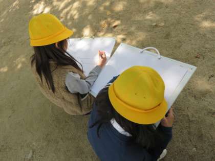 6年生は図工科の学習で校舎を写生しています。今週は雨が多く、なかなか外に出ることができませんでしたが、今日は天気もよく気持ちのいい気候でした。西校舎側は廊下もあり、立体的に描くのはとても難しいですが、子ども達は集中して校舎や木の葉1つ1つを細かく描いていました。【発信:教務 北風】