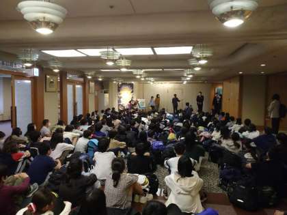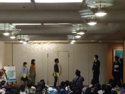 白浜のホテル、むさしに到着しました。みんな元気です。ロビーで開舎式をしました。これから1泊お世話になります。