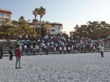 おはようございます。修学旅行2日目の朝です。まだ、眠たそうにしている子もいますが、検温チェックも終えて、みんな元気です。今日もいい天気に恵まれそうです。