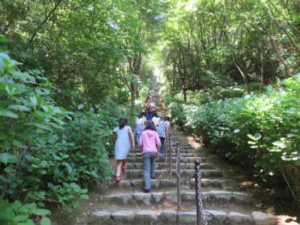 二上山ふるさと公園に荷物を置き、456段もある階段を上り二上山に上がりました。山上から眺める景色は絶景でした。ふるさと公園に戻り、みんなで弁当を食べて遊びました。広い芝生の公園で思いぞんぶん走り回りました。また、せせらぎで冷たい水に入り遊びました。子どもたちは大喜びで、二上山を満喫して帰ってきました。