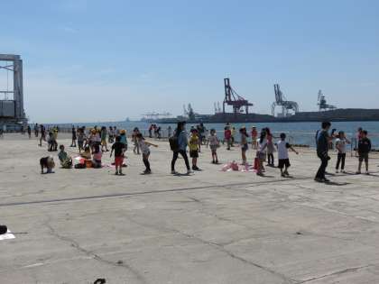 写真その3です。お弁当は海遊館の外(海沿い)で食べて、遊びました。
