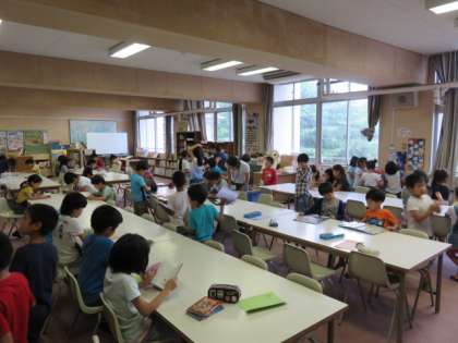 昼休みに図書室開放があり、40名を超える児童が来て、本を読んだり借りたりしました。PTA図書ボランティアのみなさんに加え、雨の日は図書委員の児童も来て図書室の管理をしています。午前中は1・2・3年生で「お話会」があり、お話や絵本の紹介をしていただきました。これを機に多くの児童が本に興味を持って、たくさんの本にふれてほしいです。【発信:教務 北風】