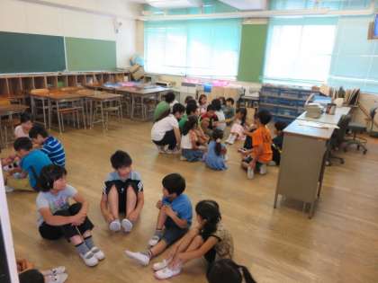 今日は全校集会があり、縦割り班で教室に集まりました。教室では、1〜6年生がグループにわかれ、自己紹介ゲームをしました。1年生から順に「1年〇組の□□です。」横の子は「1年〇組□□さんのとなりの2年〇組△△です。」と前の子の名前を覚えて自分の名前を自己紹介します。最後の6年生は1〜5年生の名前をみんな言わないといけないので大変ですが、さすが6年生!みんなの名前を覚えている子が多かったです。ゲームを通して縦割り班の交流を深めることができました。【発信:教務 北風】