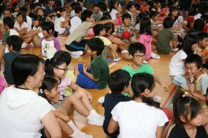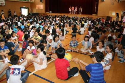 毎週、木曜日の朝に児童集会を行っています。児童集会では、1年〜6年までが縦割り班に分かれて交流を深めています。今日は2学期に入って初めての児童集会でした。集会委員会が企画したボールをまわすゲームにみんな大盛り上がりでした。