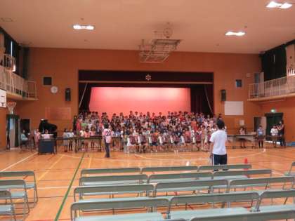 4年生と6年生は明日の学年だよりに向けて最後の練習をしました。呼びかけや合唱や合奏も仕上げの段階に入り、講堂は蒸し暑かったですが全員が力を合わせてがんばっていました。内容は明日のお楽しみです。明日の学年だよりは2時間目に6年・4年の順に講堂で行います。土曜授業は1年・2年・3年・5年は2・3時間目、4年・6年は2時間目の参観になります。多数のご参観をお待ちしています。【発信:教務 北風】