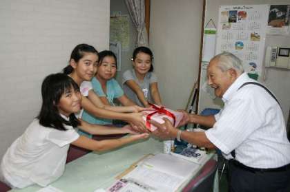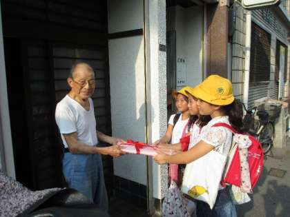 毎年、地域で温かく見守ってくださっているお年寄りの方々に感謝の気持ちを込めて、敬老の日のお手紙を書いています。昨日、児童を代表して、代表委員会のメンバーが「真生クラブ」「万年青会」の方に渡しに行きました。
