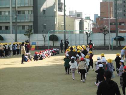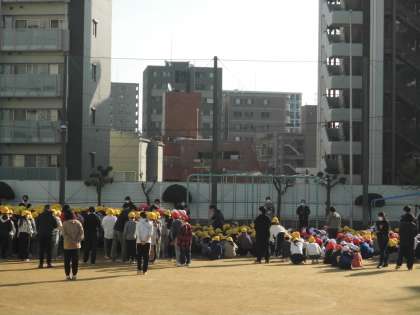 2時間目に火災を想定した避難訓練が行われました。非常時に備えて学期に1回避難訓練を実施しています。子どもたちは静かに素早く移動することができていました。