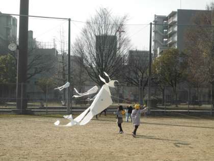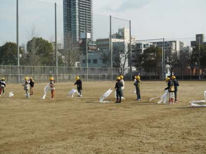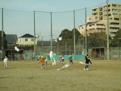 1年生が生活科の授業でたこあげに挑戦しました。今週は寒い日が続きます。今日もとても寒かったですが、子どもたちは元気よく走ってたこあげを楽しんでいました。