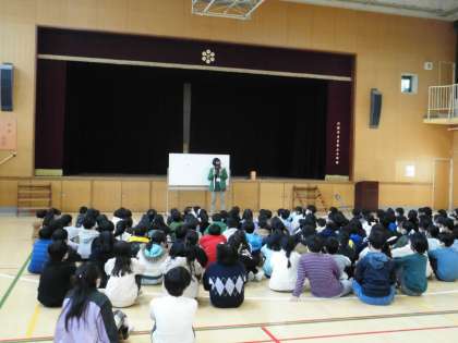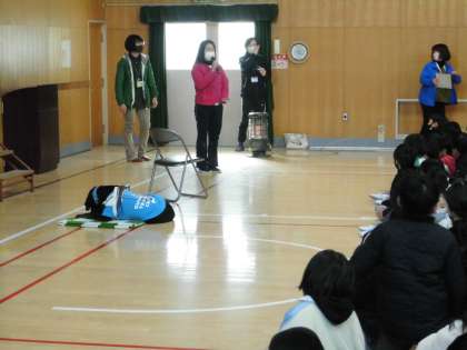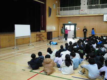2月1日(水)前回の車椅子体験に続いて、社会福祉協議会の方にお越しいただいて、盲導犬や目が見えない人の生活などについて、3年生が学習しました。
