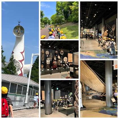 今日は5年生が万博記念公園へ春の遠足へ行きました。5月の爽やかな風が吹く万博記念公園で、実際に見る太陽の塔の大きさに驚いたり、民族学博物館の様々な展示を熱心に見学したり、自然豊かな広場でおいしいお弁当を食べたり、とても楽しい遠足になりました。