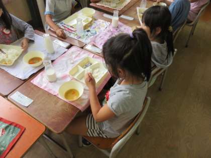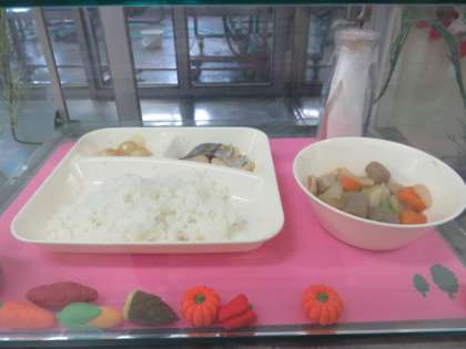 今日の給食は月見の行事献立でした。メニューは【さごしのしょうゆだれかけ・さといもとこんにゃくのにもの・みたらしだんご・ごはん・牛乳】です。旧暦の8月15日(今年は9月27日)は、十五夜や中秋の名月といって、月が美しい時です。いもやだんごをそなえたり、すすきをかざったりしてお月見をします。(給食カレンダーより)1年生の子ども達は「みたらしだんご大好き!」「さといももおいしい!」と喜んで、食べていました。【発信:教務 北風】